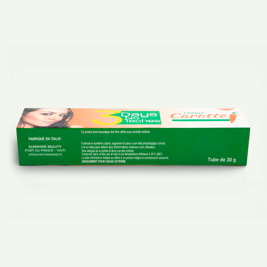 3 Days No Taches Carrot Cream It is designed for localized skin care, easily integrating into your daily body care routine. Its light texture allows for precise application to specific areas, leaving skin feeling soft and looking more cared for.